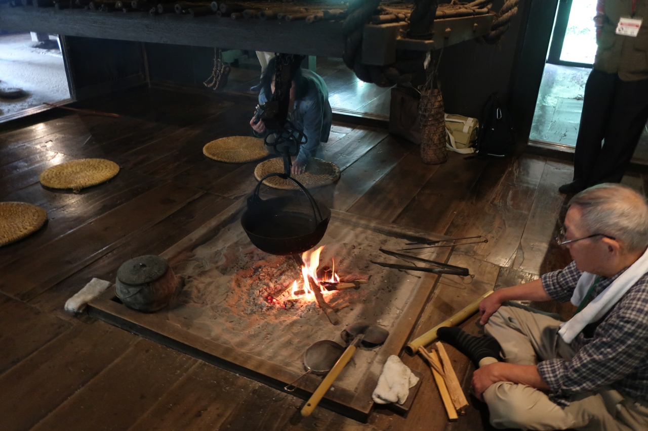 訪れたときは囲炉裏に薪をくべており、煙かったですが、防虫の為に茅葺屋根をいぶす珍しい姿を見ることができした。この様な経験が出来るのも古民家園ならではです。
