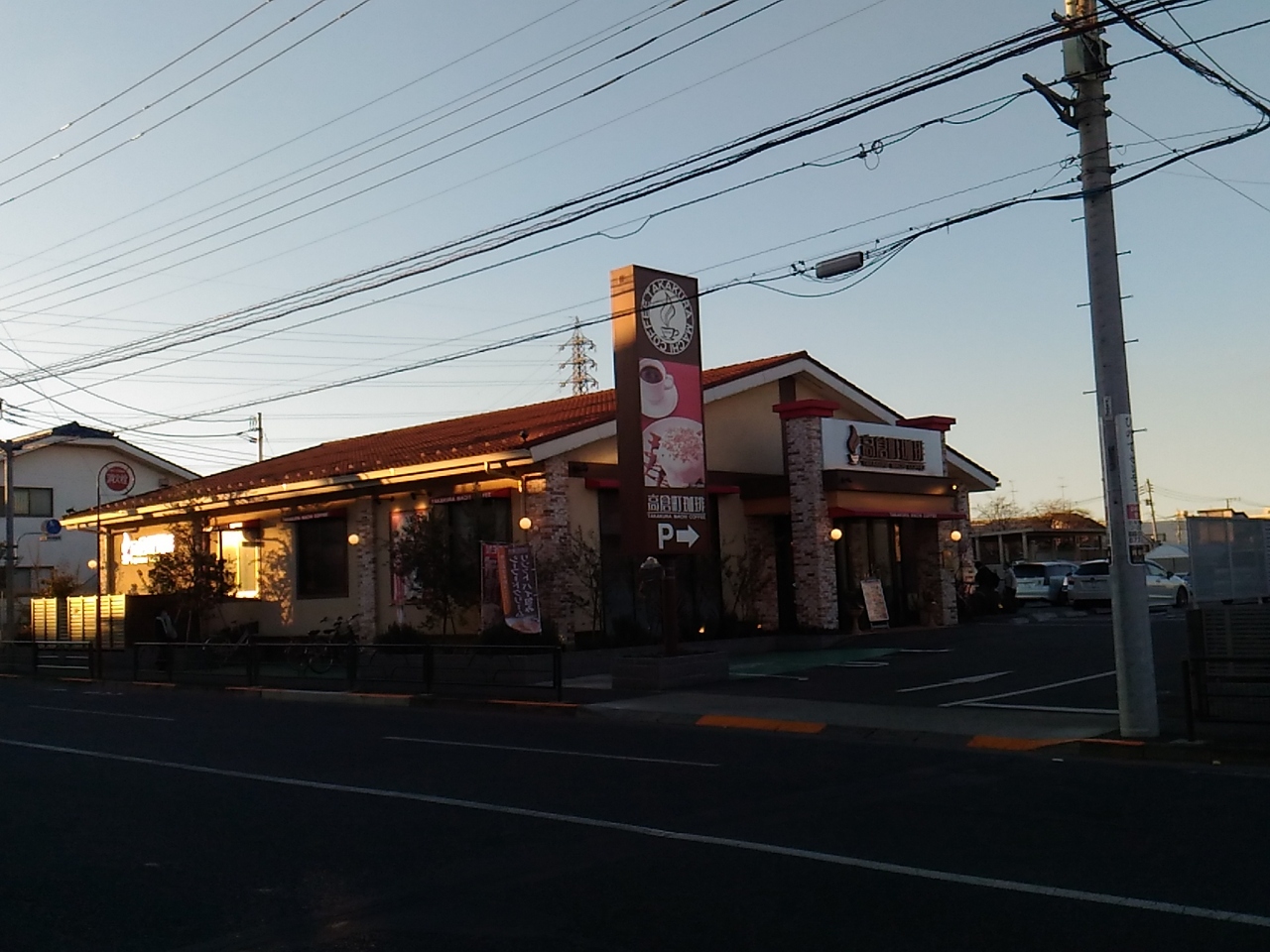 青梅街道沿い、JR武蔵野線の新小平駅と西武線の青梅街道駅の中間辺りにある珈琲店です。今日の仕事も終了で珈琲店では初めて見る看板に魅かれて入店。オ~ノ~。普段ヴェローチェやプロントに行き慣れているので、チョイと高い?まあその分寛げる雰囲気と喫煙席があるので良いのですが。対象の飲み物は、おかわり半額のシステムもありましたが、この値段では遠慮します。ブレンドで420円也。でも珈琲は美味いです。