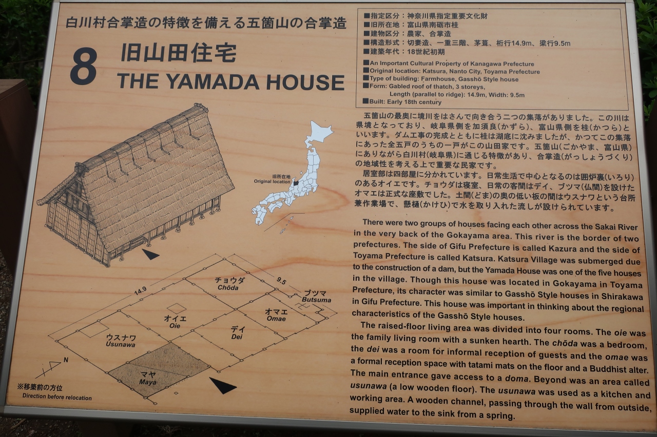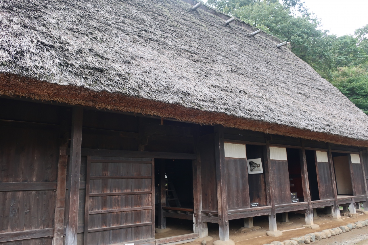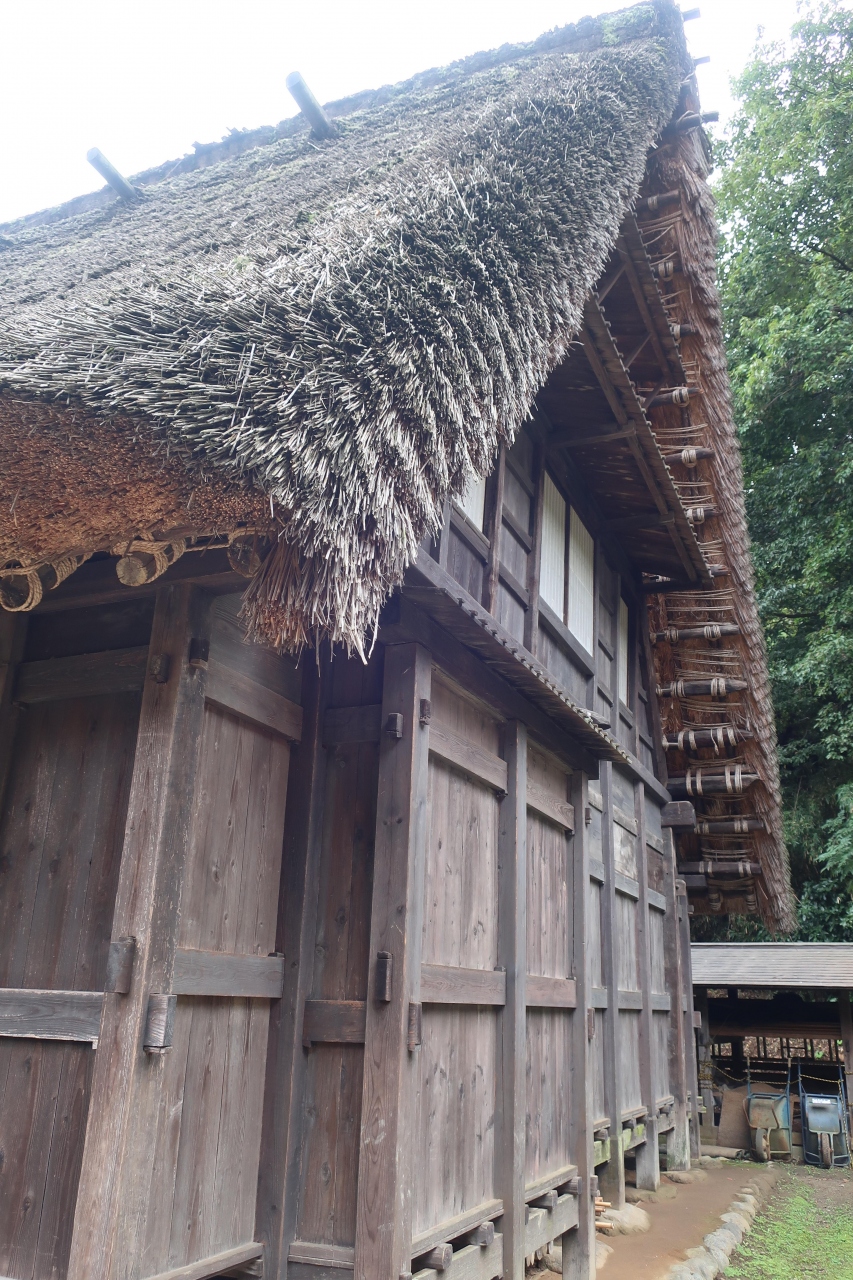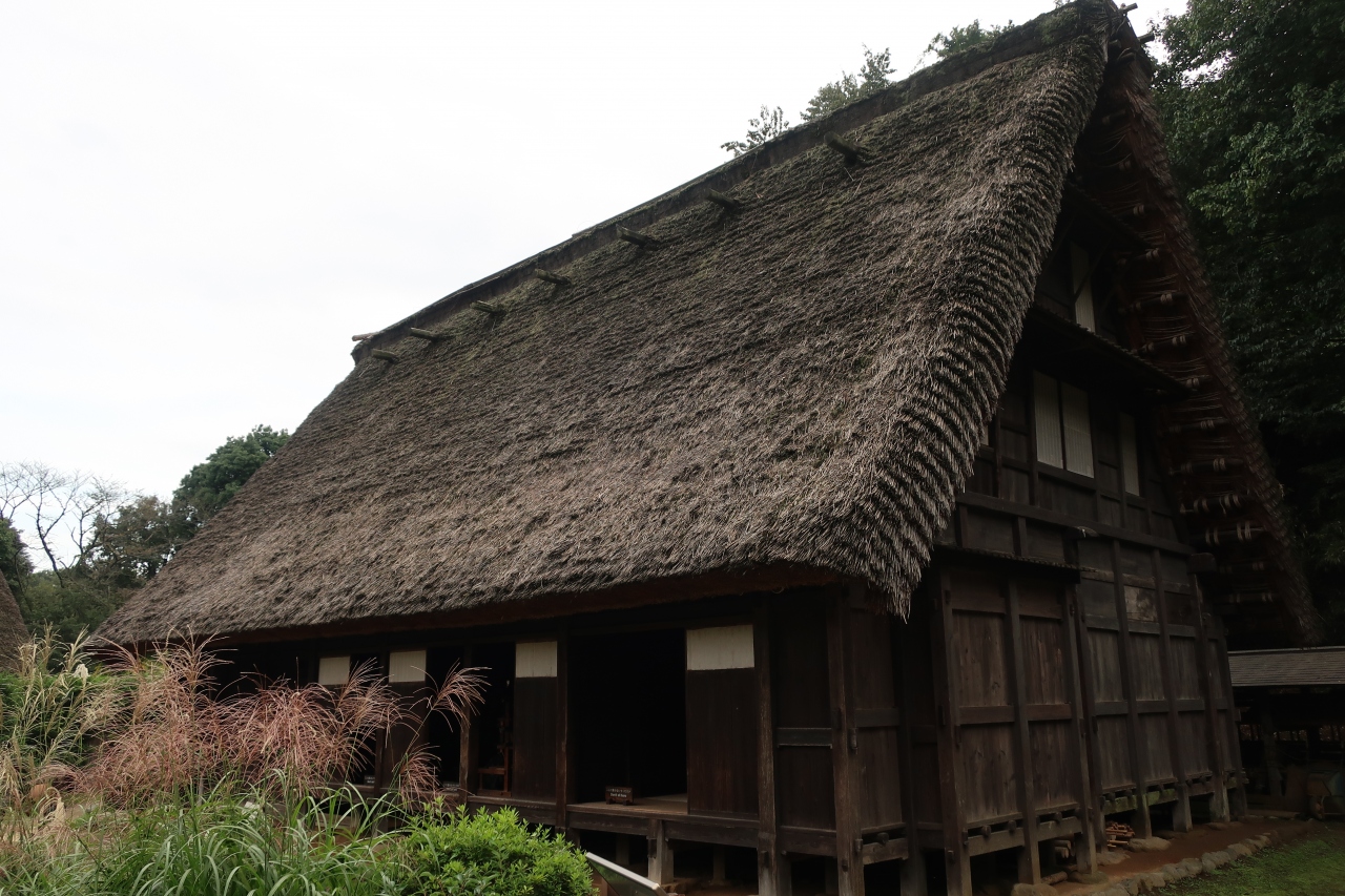 川崎市立古民家園にある合掌造りの古民家です。元々は富山の庄川上流 桂にあった建物です。長方形のシンプルな形をした切妻造りの建物ですが、塩硝を作っていた高い床下、外から水を引いた水舟など、当時の生活の知恵を知ることができる古民家です。