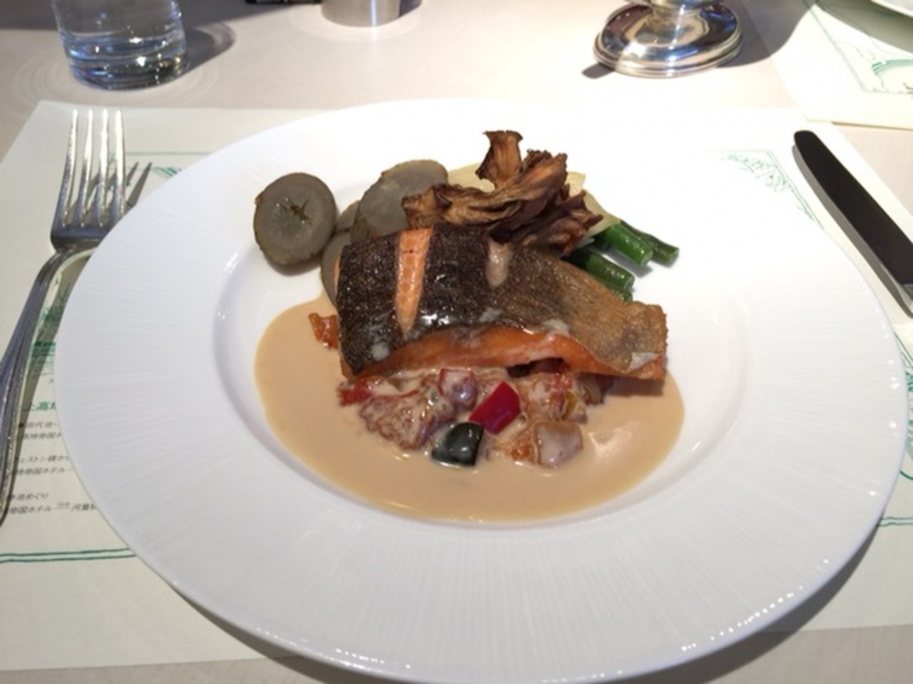 帝国ホテルのオールデイダイニング パークサイドダイナーは1階にあります。上高地帝国ホテル開業85周年フェア開催中で千曲川サーモンのポワレ ラタトゥイユ添え白ワイン風味のソースを頂きました。サーモンがパリパリで下に敷かれてるラタトゥイユがしんなりしてて絶妙にマッチして美味しかったです。量もたっぷり有りました。2/2~8まで同じメニューがまたあるようなので ぜひ行きたいです。
