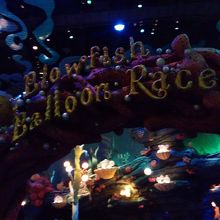 海の中をテ━マにしたエリア(マ━メ━ドラグーン)にあるアトラクションのひとつです。ブローフィッシュ(フグ)の形をしたバルーンに吊り下げられた貝殻に乗ってクルクル空中を回ります。小さい子どもでも楽しむことができるアトラクションなので家族連れにはオススメです。