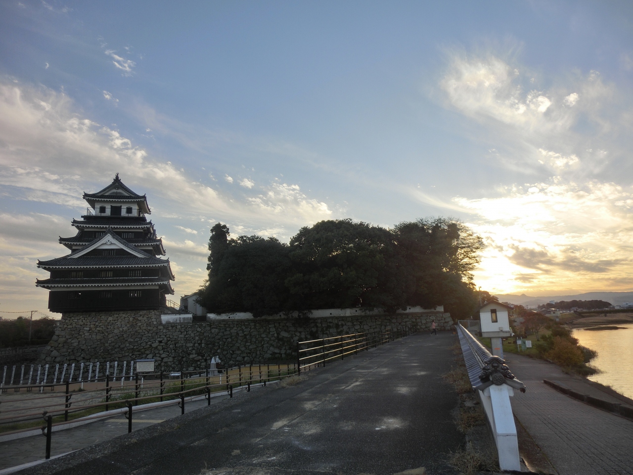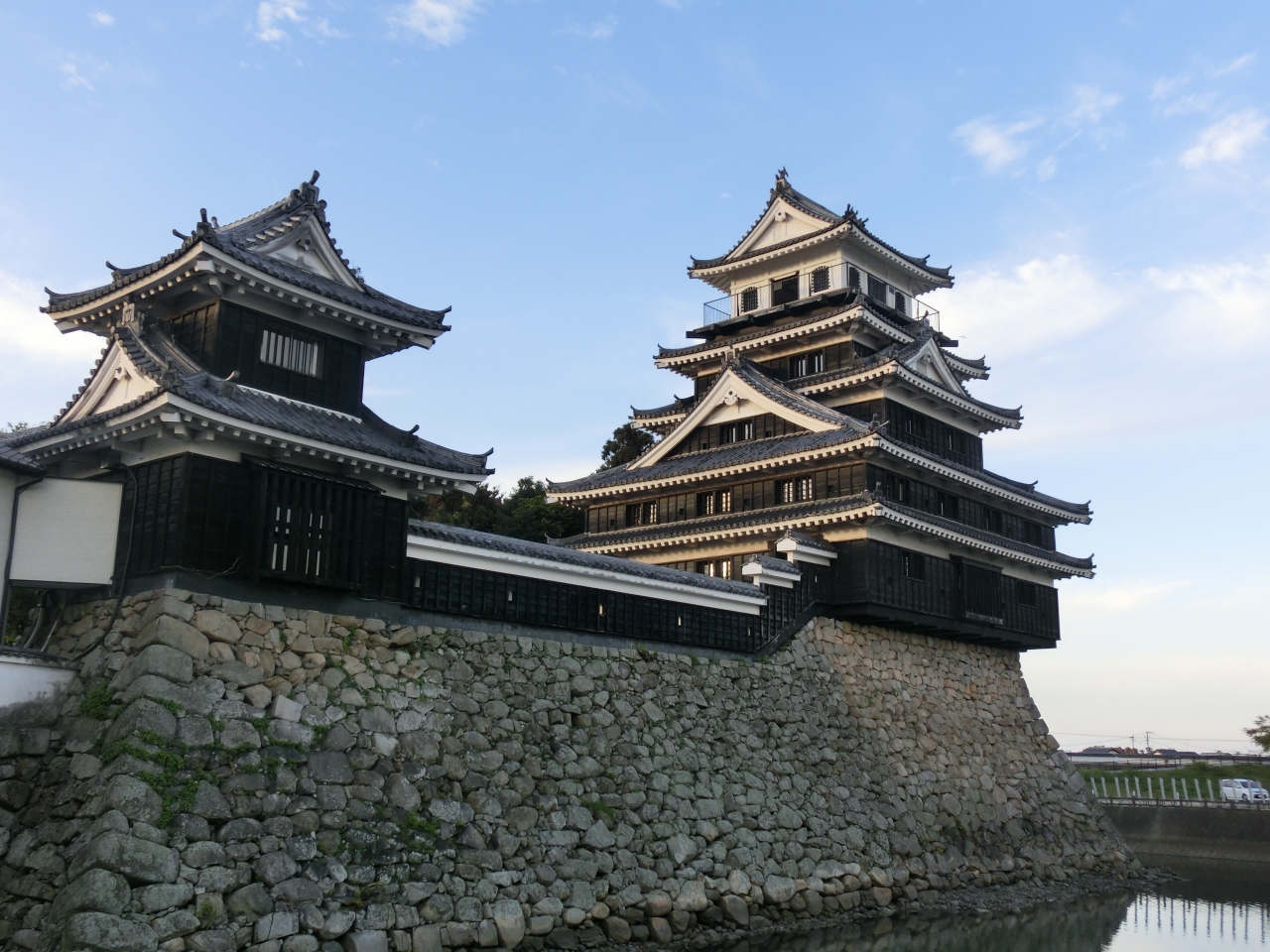 黒い天守でこぢんまりというのが第一印象です。中津城というと黒田官兵衛ですが城内は江戸時代に長く城主を勤めた奥平家の甲冑、武具、陣羽織等の展示館になっています。展示の中では長篠の合戦での家臣鳥居強右衛門の決死の活躍が一番興味を引きました。天守最上階からの眺めは最高で市街、中津川、周防灘、近隣の山並みが一望出来ます。中津城を出て御堀端に降りると石垣からせり出した美しいお城全体が眺められます。ここから眺めるお城は優美で大きく見えました。裏に回ると黒田時代とその後の細川時代の石垣の境界がありその違いを説明しています。黒田官兵衛と正室の像も仲良く並んでいます。中津川の遊歩道から眺めるお城も綺麗でした。