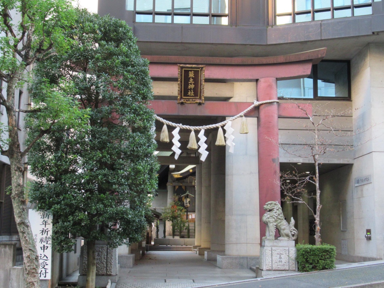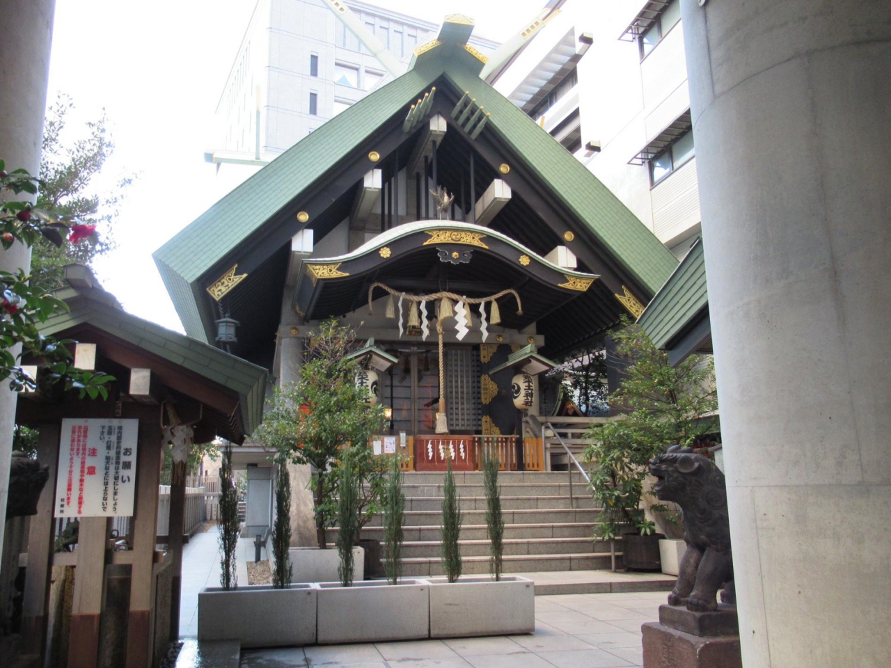 - 地下鉄・九段下駅出入口7を出て直ぐの九段北一丁目交差点を左折し中坂を1分少々上がった左手のビル前に鳥居があるところです