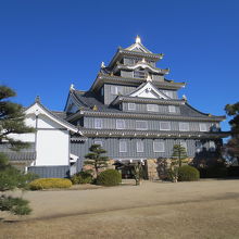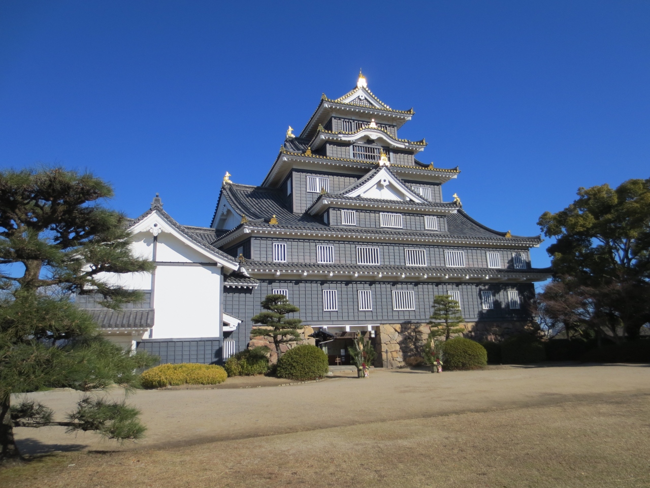 岡山駅からバスで美術館前で下車して歩きました。徒歩で10分くらいです。1月12日でしたが、お正月の門松がまだありました。入場者は少なくてゆっくり見学できました。天守閣は6階までですが、4階までエレベーターがありました。バリアフリーに気遣いがありました。