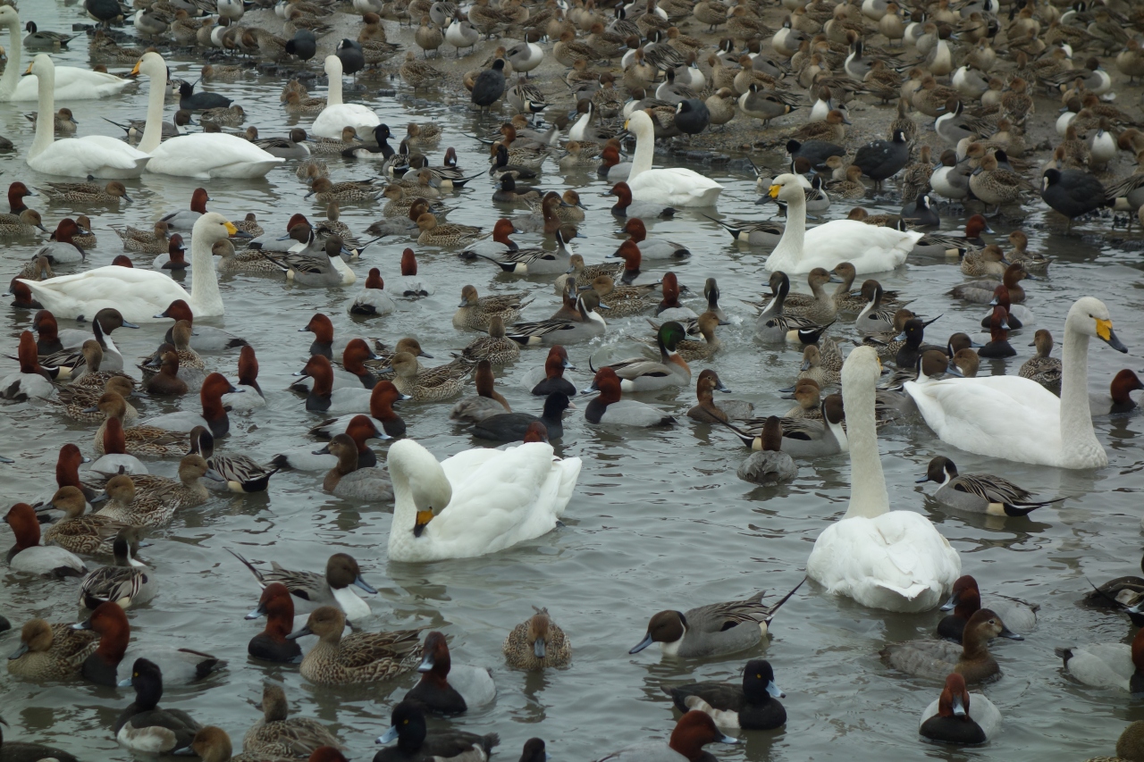 ツアーで訪れたので、時間は選べませんでしたが、やはり太陽の昇る前、沈む頃でないと白鳥は少ないです。日中は近隣の田んぼなどに集まる白鳥を見かけたりします。