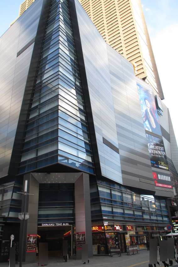 TOHOシネマズに行くために訪れましたが、上層部のホテルグレイスリー新宿部分の外装が目立っていて印象的です。以前の新宿コマ劇場などの跡地に建てられたものですが、中には劇場がありません。採算面などいろいろな問題があったのでしょうが、長年親しまれてきた劇場が完全に姿を消したのが残念です。