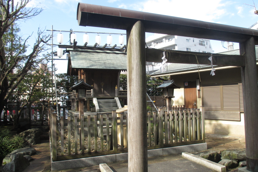 都道302号線は抜弁天交差点で右に逸れていきますが、その先に出来た三角地に厳島神社はあります。ここは祭神の市杵島姫命と仏教の弁財天が習合しています。その弁財天はここでは通称抜弁天と呼ばれていますが、それは拝殿前を参道が通り抜けているからです。(江戸時代にも三角地だった様です)そこから苦難を切り抜けると崇められた様です。三角地の近道などと思ってはご利益がなくなってしまうのでしょうね。