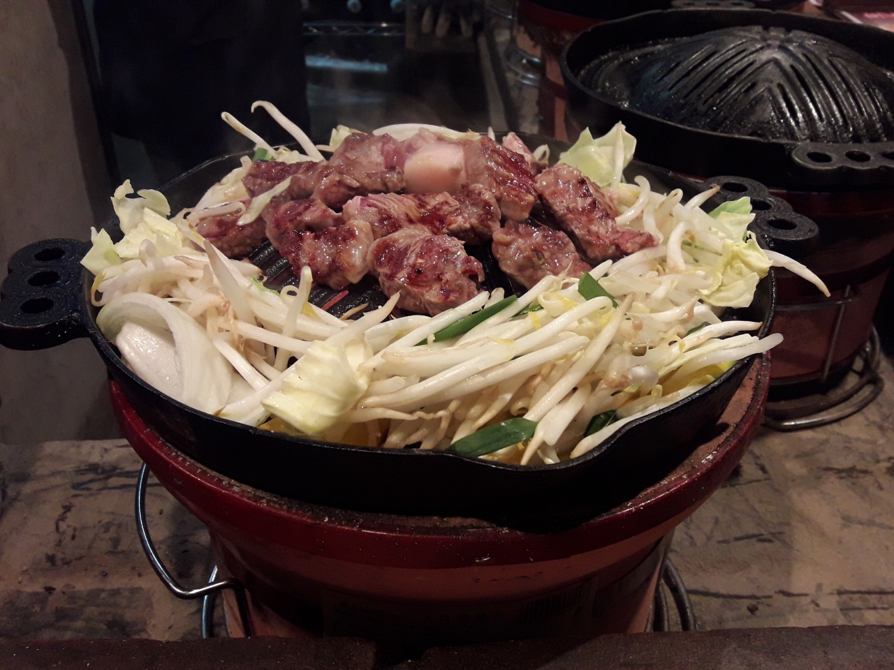 ジンギスカンはお店の人が野菜を鍋の周囲に敷いて、鍋の頂上付近にお肉を置いて焼いてくれました。野菜もたっぷり、お肉はラムの臭みがないどころかとても美味しく、鍋の上で焼き続けても味が劣化しない感じで、とても良かったです。