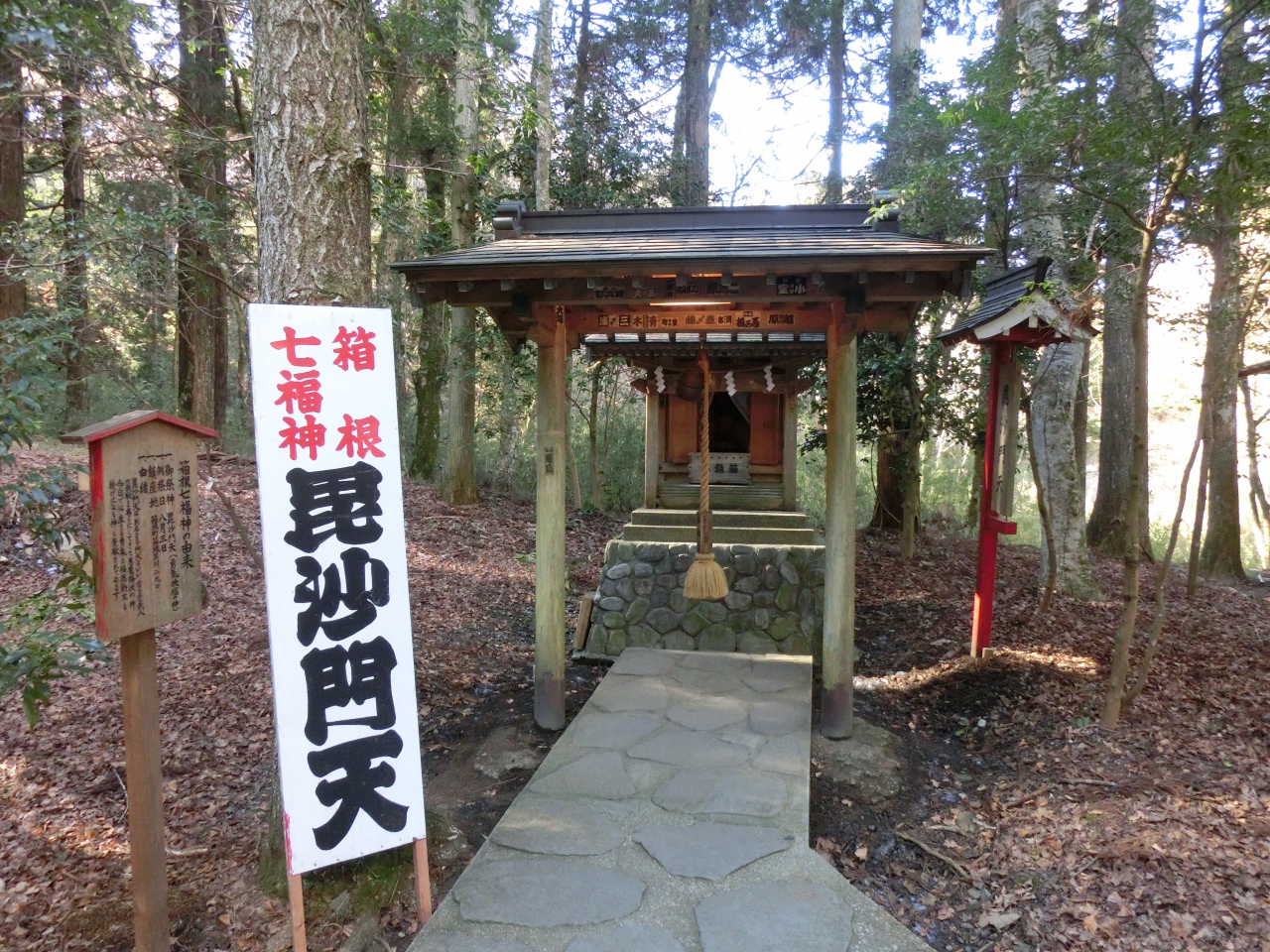芦ノ湖前の国道1号線を箱根町から元箱根とは逆方向(三島方面)に歩くとすぐ信号があり駒形神社(右方向)の案内板があります。歩くこと5分弱で左側に駒形神社の鳥居が見えます。参道、石段を上ると社殿があります。新しく綺麗な社殿です。参道の石段も社殿も箱根神社のスケールには比べようもありませんが、小さいながらも相応の雰囲気があります。右脇に毘沙門天の祠があります。家内安全、健康第一をお祈りした後、休憩所に入ると年配の女性が二人居られ、一人が御朱印を書いて下さり、もう一方が温かいお茶を出してくれました。七福神巡りをしている旨伝えると、箱根芦ノ湖の地図に7か所のマークをしてくれ、これから向かう本還寺への行き方等を親切に教えてくれました。温かいお茶と御朱印を頂いた後の帰り道、近所の方の散歩でしょうか、母親に手を引かれたよちよち歩きの女の子が参道を上がって来ます。うちの2歳8か月の孫より年上かなと思ったりしながら、ほのぼのとした気分で神社をあとにしました。