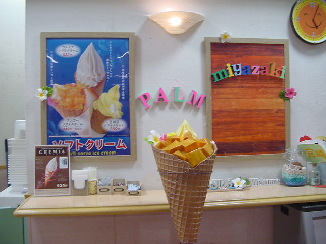 宮崎ブーゲンビリア空港の1Fにあるジューススタンドです。南国らしいトロピカルな外観で、いかにも立ち寄りやすい。宮崎産のマンゴージュースを飲みたかったのですが、マンゴー100%だと1000円近くします。それでも観光客のみなさんは飲んでいましたね。私はちょっと安いマンゴーミルクを味わいましたが、これも風味が良かった。