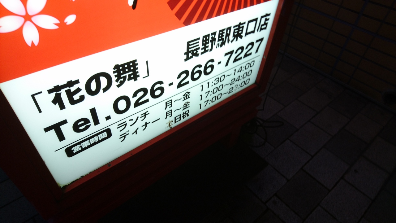 長野駅から歩いて3分ほどのところにある居酒屋さんです。はなの舞というと、チェン店を連想しますが、ここは「花の舞」。ちょっと違った雰囲気です。どこが違うかというと、馬刺しがあったり、地酒が揃っていたり、ご当地グルメが味わえます。長野に来たので、海鮮よりは、ご当地のものを味わいたいですね。ここはそんなご当地の味が楽しめるチェン店です。
