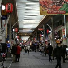縦横にあるアーケード商店街、休日やお正月には、老若男女で大にぎわいです。
