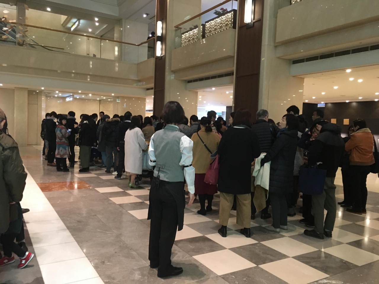 ホテルロビーで子供たちを待ち