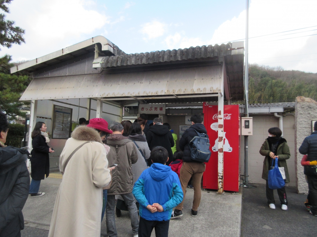 JR岡山から出ている吉備線の駅です。乗車15分ほどで吉備津に到着です。吉備津神社へは徒歩15分ほどの所にあります。無人駅ですが、初詣ということもあって駅員さんが出ていました。周りは住宅地です。古い昔ながらの駅で、ホームは上下線一つです。