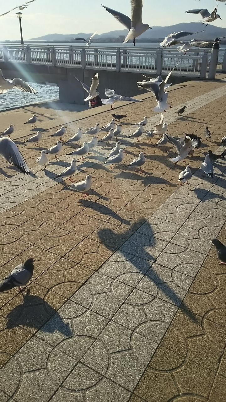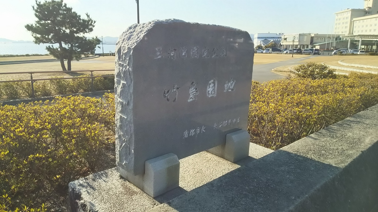 駐車場に車を停めて、竹島に渡るまでが竹島園地です。足洗い場があるところを見ると夏は海水浴場になるのかな。カモメがたくさんいて、ひとりのおじさんがスナック菓子を持って鳥たちと戯れていました。その一方で、カメラクルーと演者がいたので芸能人かと思って近づいたら、東南アジアっぽい人たちと同国の番組スタッフ(?)でした。