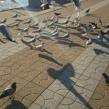 大量のカモメがお出迎え