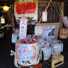 総門から表参道の坂道を上りきったところにある酒屋さん、創業は明治5年(1872)です。夢のお告げで酒を作り、美味しい井戸水も「百薬の長」としてお店発展の元になったようです。お酒はもちろんですが、最近、注目浴びてる甘酒も目に入りました。甘酒の飴、麹の甘酒等店内にもいろいろあり、友人は粕汁や粕漬け、甘酒も作ると酒粕を3袋も購入しました。