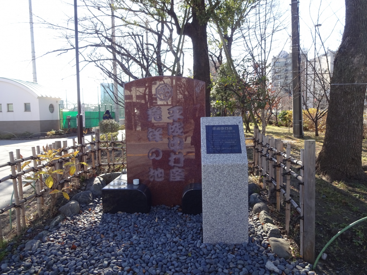 その折、山谷堀公園の道を渡ったところ、リバーサイドスポーツ公園の一角にこの記念碑を見つけました。