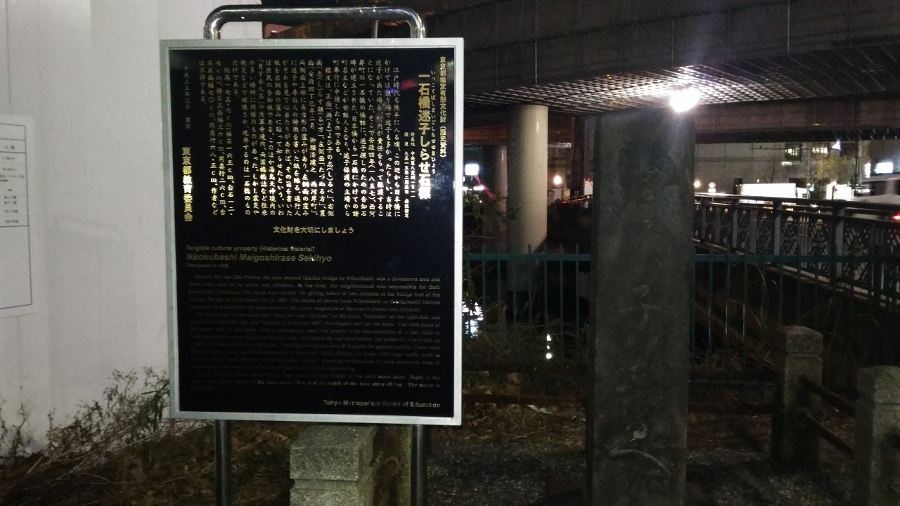 安政年間設置された迷子探しの告知石碑です。石碑の上の方にくぼんだ部分があり、ここに探す側の者、情報を持つ者が紙を貼って情報交換していたそうです。いまはあまり人通りは多くないですが、当時は往来が多かったので此処に設置されたようで、湯島天神さんの方にも同様のものがあるそうです。