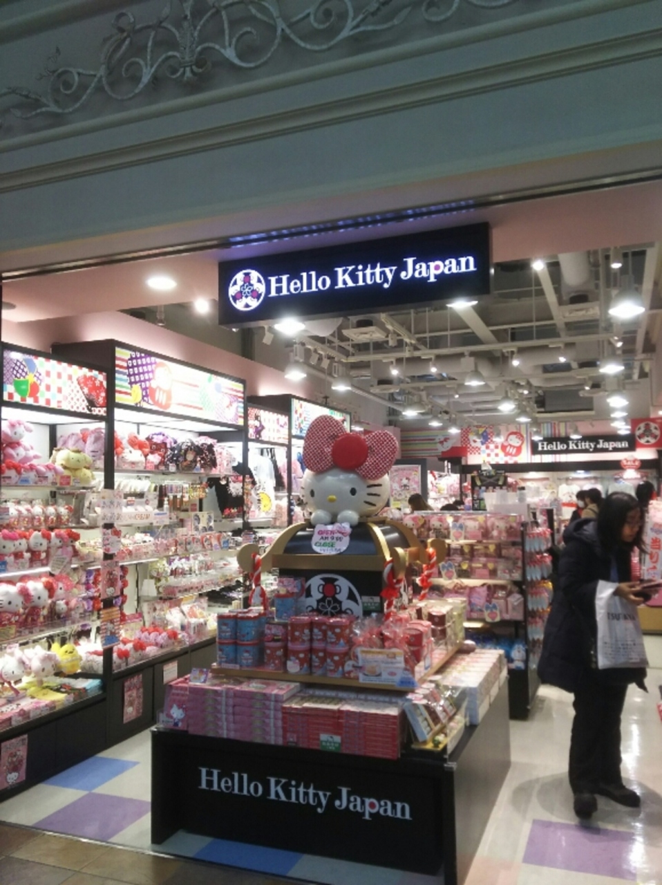店内はハローキティ1色で、赤やピンク色でとてもわくわくします。日本風の着物を着たキティちゃんなど外国人観光客が喜びそうな物がたくさん販売されていました。小物も多かったので帰国者が余った円を使うのにぴったりだと思いました。
