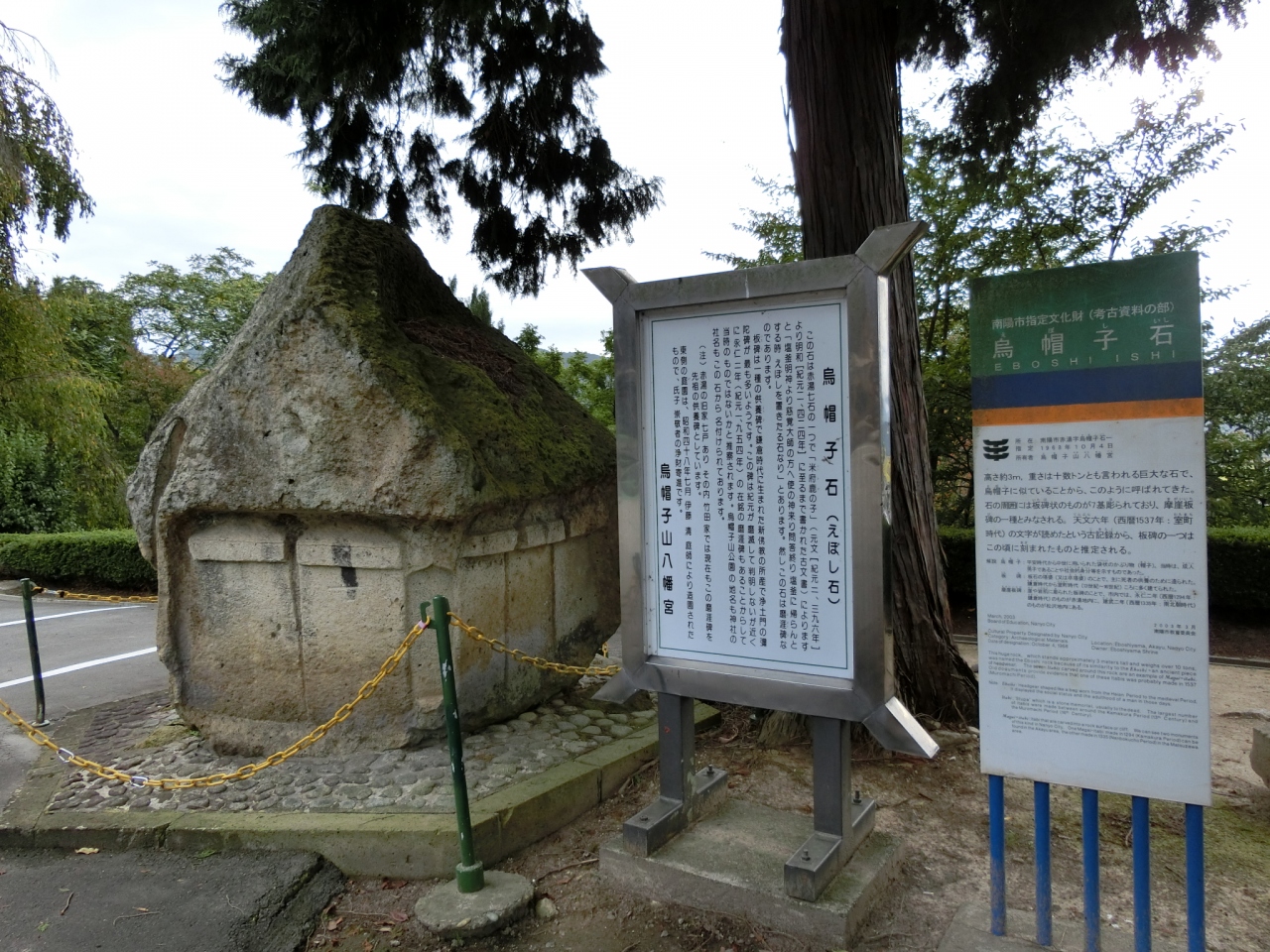 八幡宮内には赤湯町にある巨石七岩の1つで高さ約3メートル重さ10数トンもある巨大な石の鳥帽子石もありました。