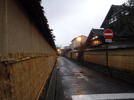 前回金沢に行った時は、長町武家屋敷跡を車で通過するだけでしたが、今回は野村家を観光するため周辺を散策することができました。雨の日の夕方近くだったので、通りには観光客も少なく、土塀が続く街並みやオレンジに灯った街灯が良い雰囲気でした。またお土産屋さんも結構ありますが、すべて周辺の景観に溶け込んでました。