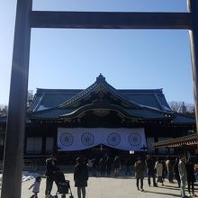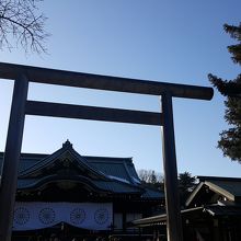 九段下駅を降りてすぐです。 降りてすぐの所に大きな鳥居があり、またしばらく歩くと神社に着きます。靖国神社の参拝と合わせて 拝観しました。