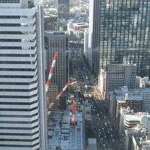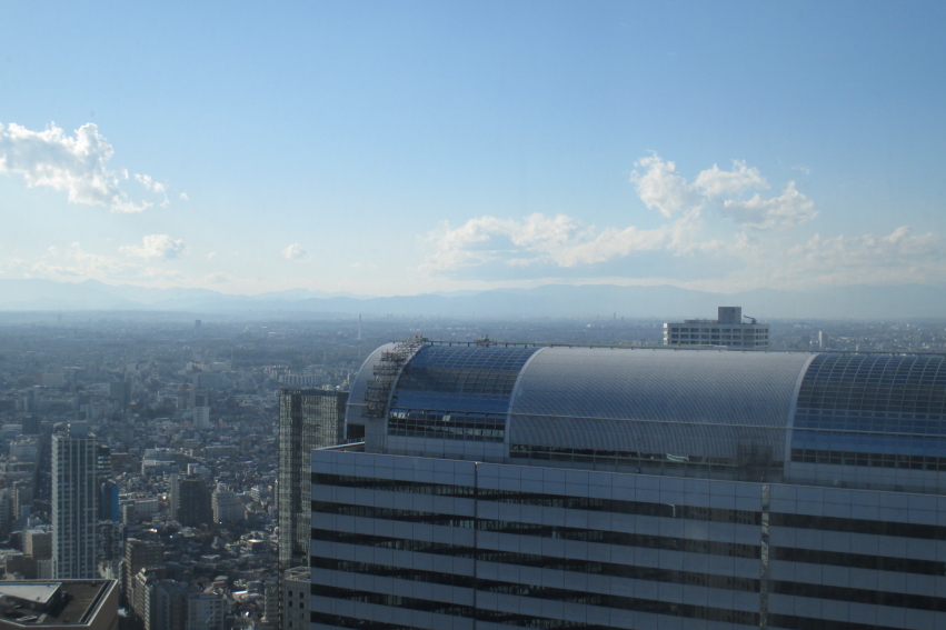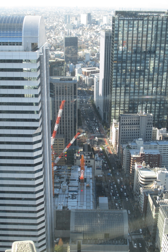 最近は、いくつかの高層ビルに設けられていた展望台が次々と姿を消してしまい残念なところですが、ここ新宿野村ビルでは辛うじて残っています。西側だけですが、新宿アイランドタワーの最上部のドームが目の前だったり、青梅街道の車の多さを眺めたりと、高層からの眺めを充分堪能できました。