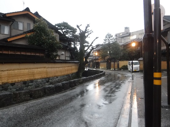 長町武家屋敷跡のエリア内を流れる大野庄用水は、金沢で一番古く約400年前以上前に造られたそうです。犀川から水を取り入れ、武家屋敷跡に沿って流れており、生活用水の他に各屋敷庭園の曲水としても利用され、郊外に抜ければ農業用灌水となります。江戸時代には運搬にも使われていたそうで驚きです。長町の土塀に沿って流れる用水の風景は、より一層風情を感じさせます。