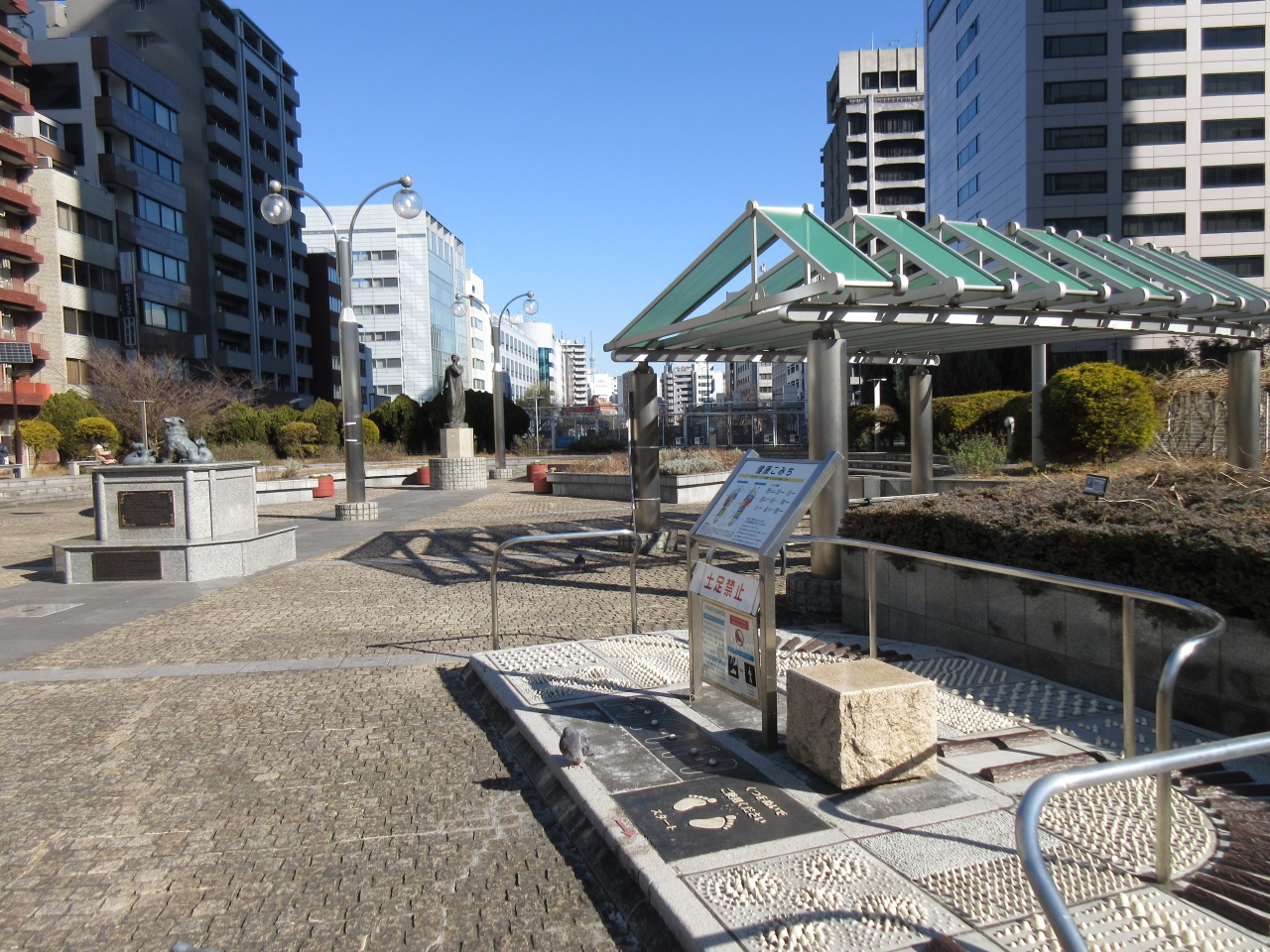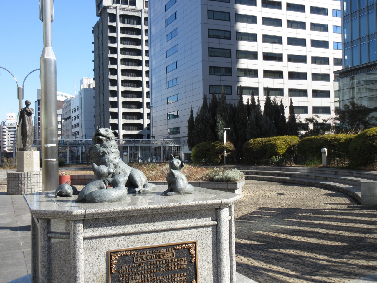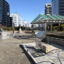 1964年に行われた東京オリンピックの際に、築地川を埋め立て、川が流れていた上に造ったこじんまりした公園です。川が流れていたところは、現在高速道路になっています。園内には、人に慣れた鳩が戯れ、ベンチも設置されていて、喫煙場所もあり、ビジネスマンがのんびり休憩できる雰囲気があります。公園中央には殺生寸前だった犬が、セラピー犬として活躍したことを記念した碑も建っています。銀座と築地の間にある公園なので、銀座や築地を散策する際に立ち寄ってはいかがですか。
