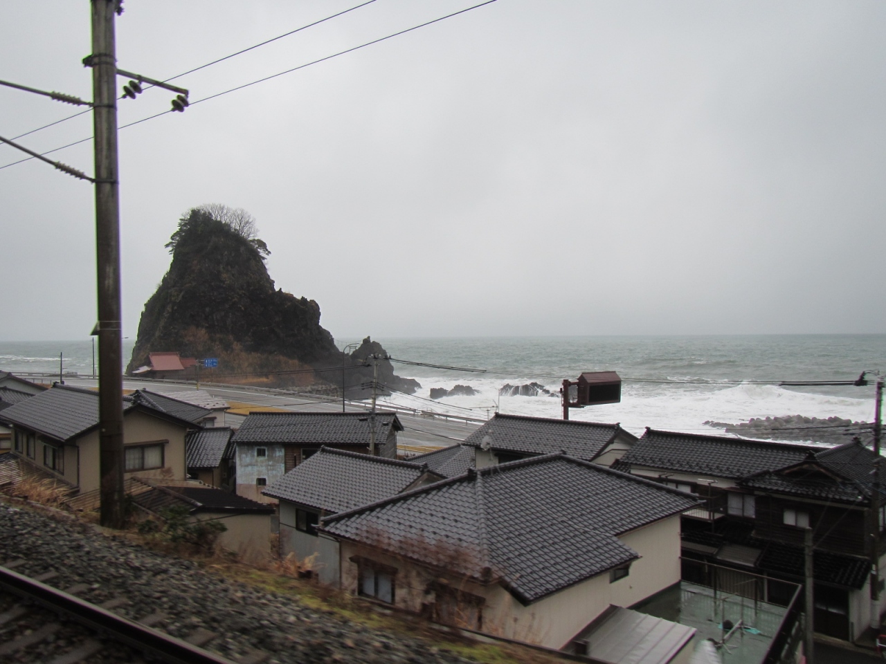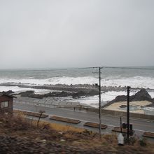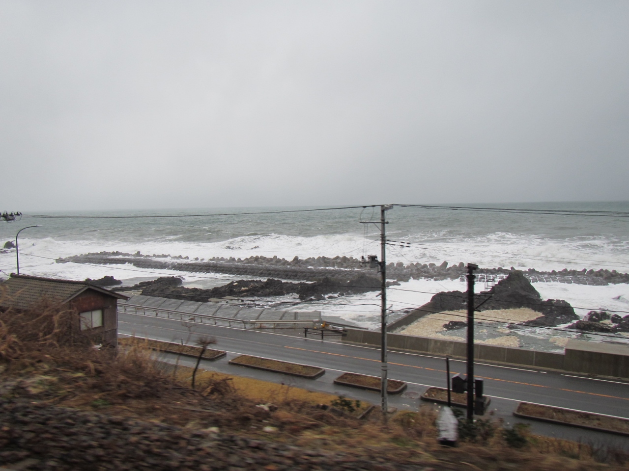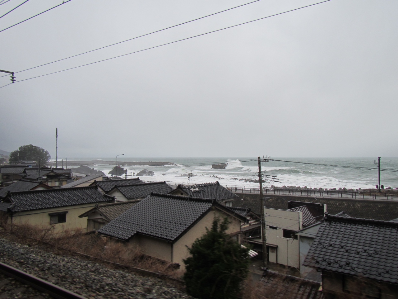冬は車窓からラクラク、荒れる日本海を鑑賞することができます。
