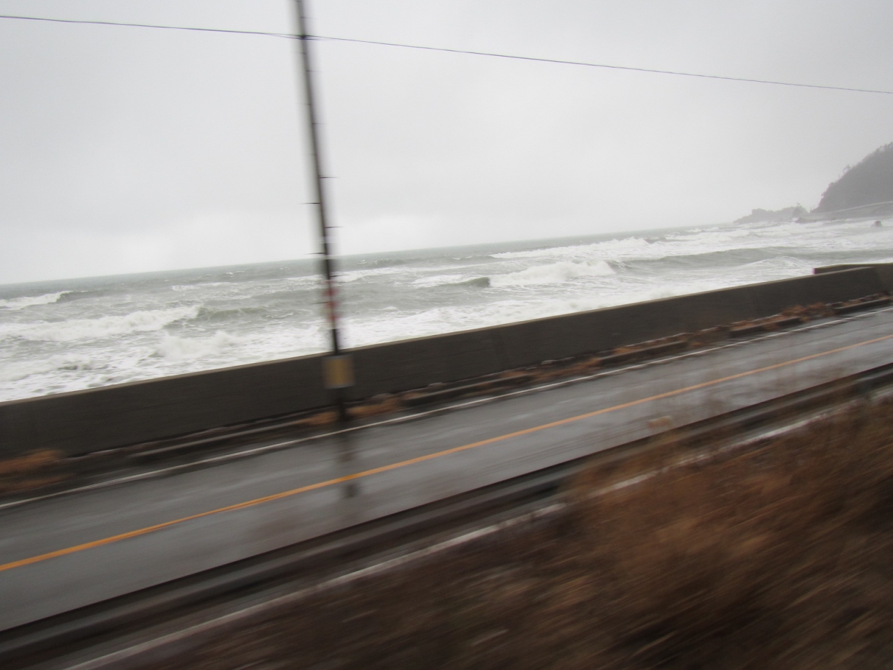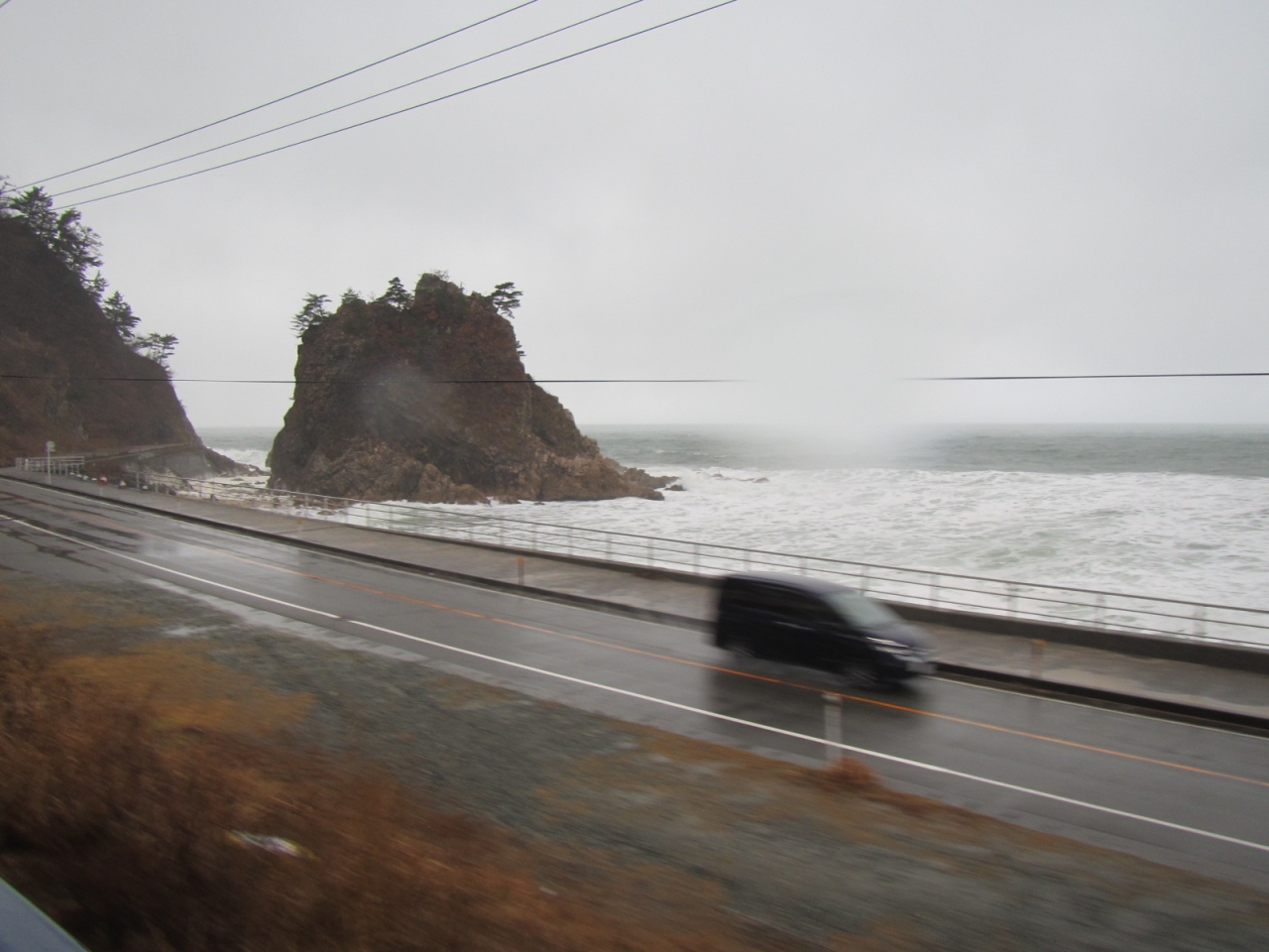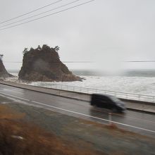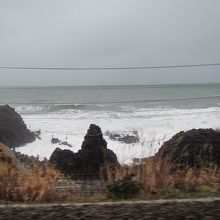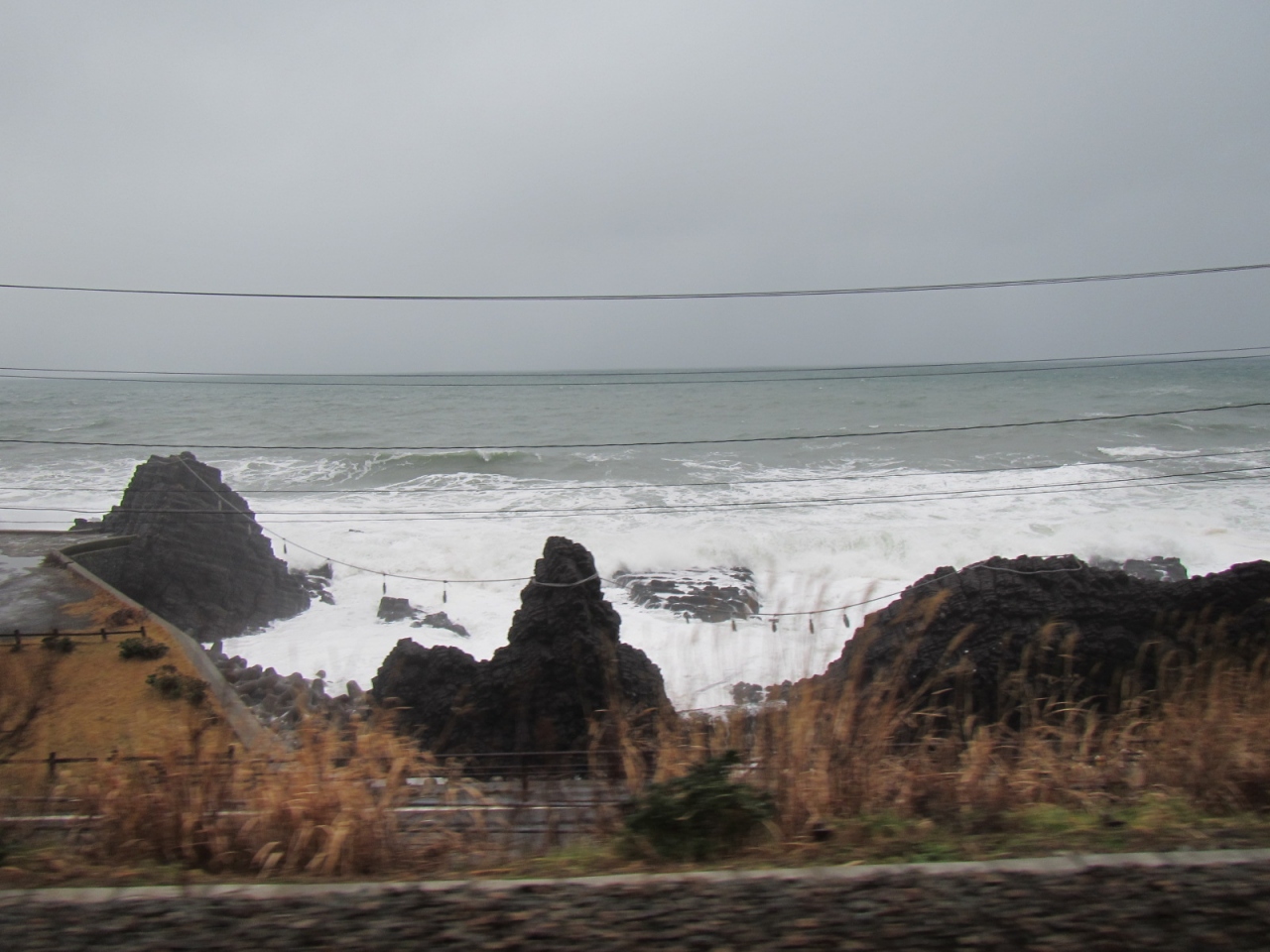 冬は車窓からラクラク、荒れる日本海を鑑賞することができます。