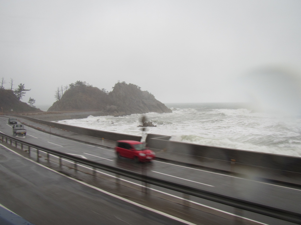 荒れる冬の日本海を車窓からラクラク鑑賞♪