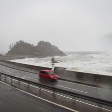 当地は、波打ち際に奇岩が連なる笹川流れの景勝地。