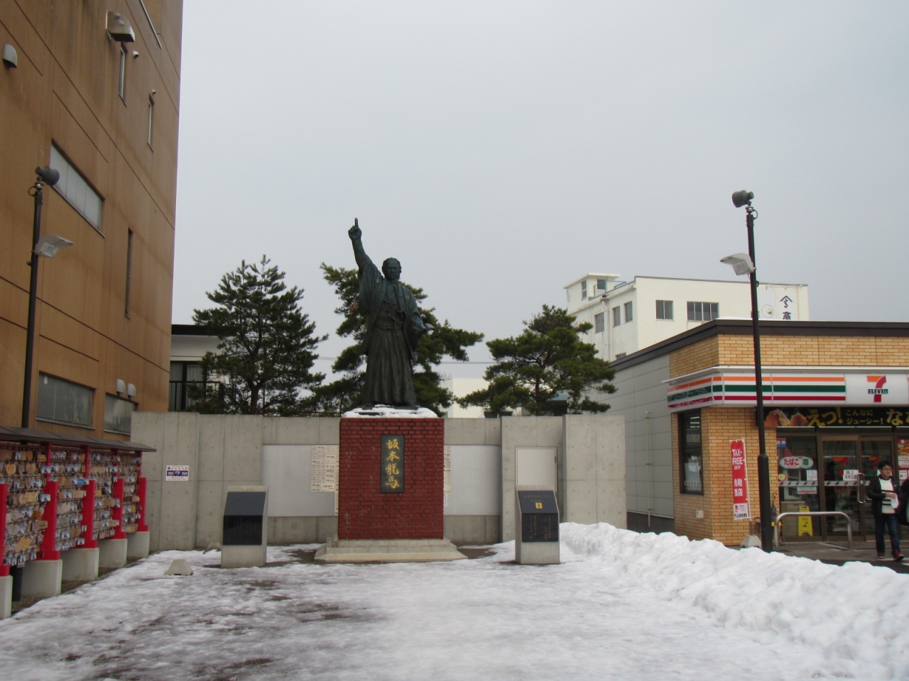 ついでに、坂本龍馬の像、その横のコンビニなどに寄ってから金森倉庫方面に向かう姿を多く見かけます。