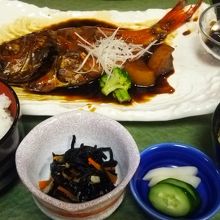 鴨川シーワールドから車で数分のところにありました。地元でとれる魚をつかった刺身が中心です。観光客に一番人気なのは、金目鯛の煮付け。金目鯛は大きさや季節が異なると値段がかわる時価なので、注文するときは確認した方がいいです。
