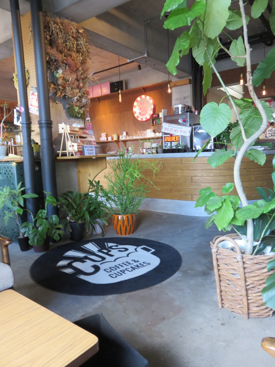 リノベーションされたビルの1Fにあり、海外のカフェの雰囲気感じる内装に、キュートなカップケーキが並んでます