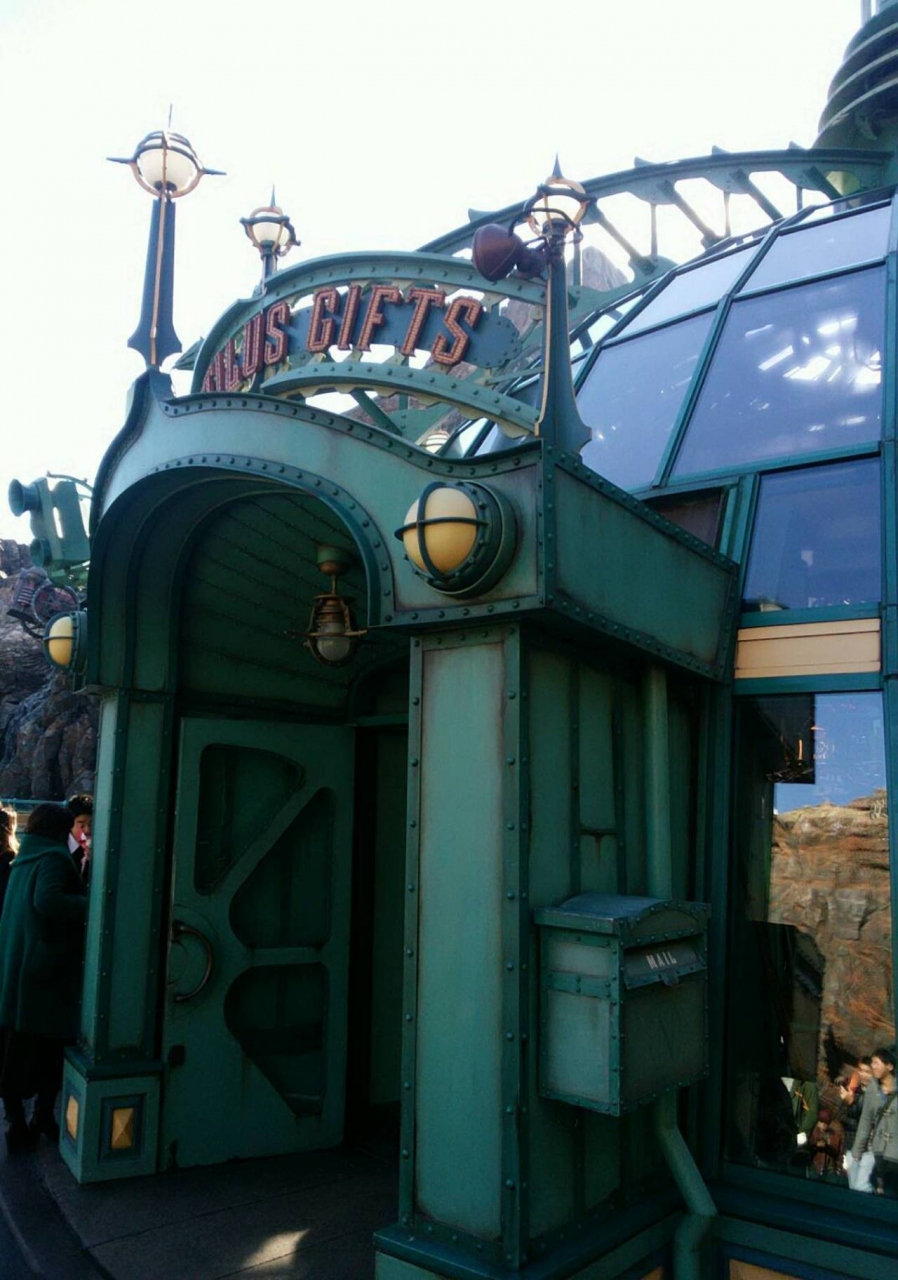 ミステリアスアイランドの洞窟を抜けたところにあるギフトショッブです。世界中の海を探険した伝説の潜水艦ノーチラス号の修理工場として使われていた場所を改造したショッブ内には、ミッキーなどのかわいいキャラクターグッズが並んでおり、これらのグッズを見ているだけでも楽しむことができます。