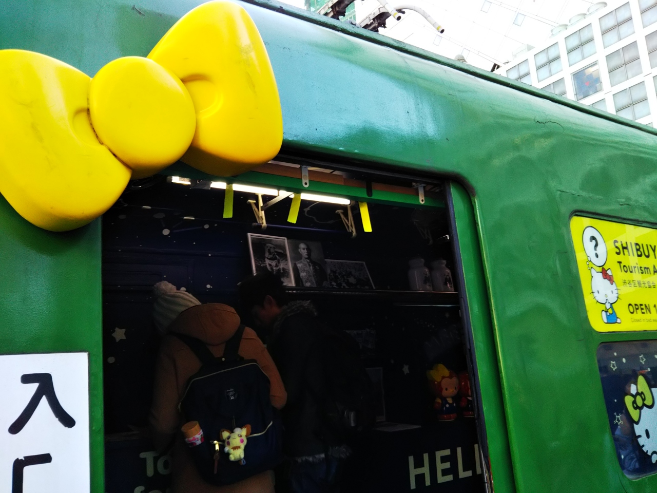 1月の渋谷は冷えます。待ち合わせや休憩のため、外に設置されているもたれかけるタイプの椅子に長時間座っているのは辛いです。そんなときに座席数は少ないですが、軟座タイプの椅子で、車内が少し暖かいこの青ガエル観光案内所はありがたかったです。