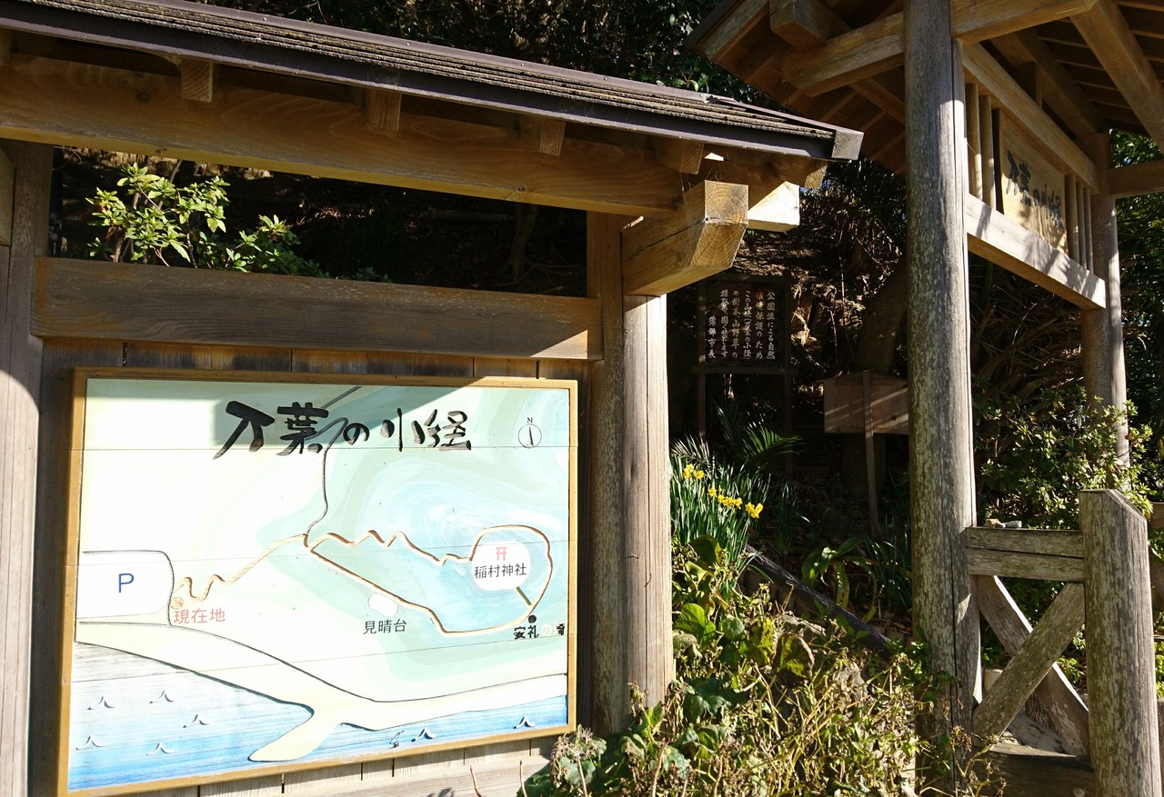 西浦温泉の海水浴場の駐車場横に入口がある万葉の小径は意外にもとても景色のよい散策路です。