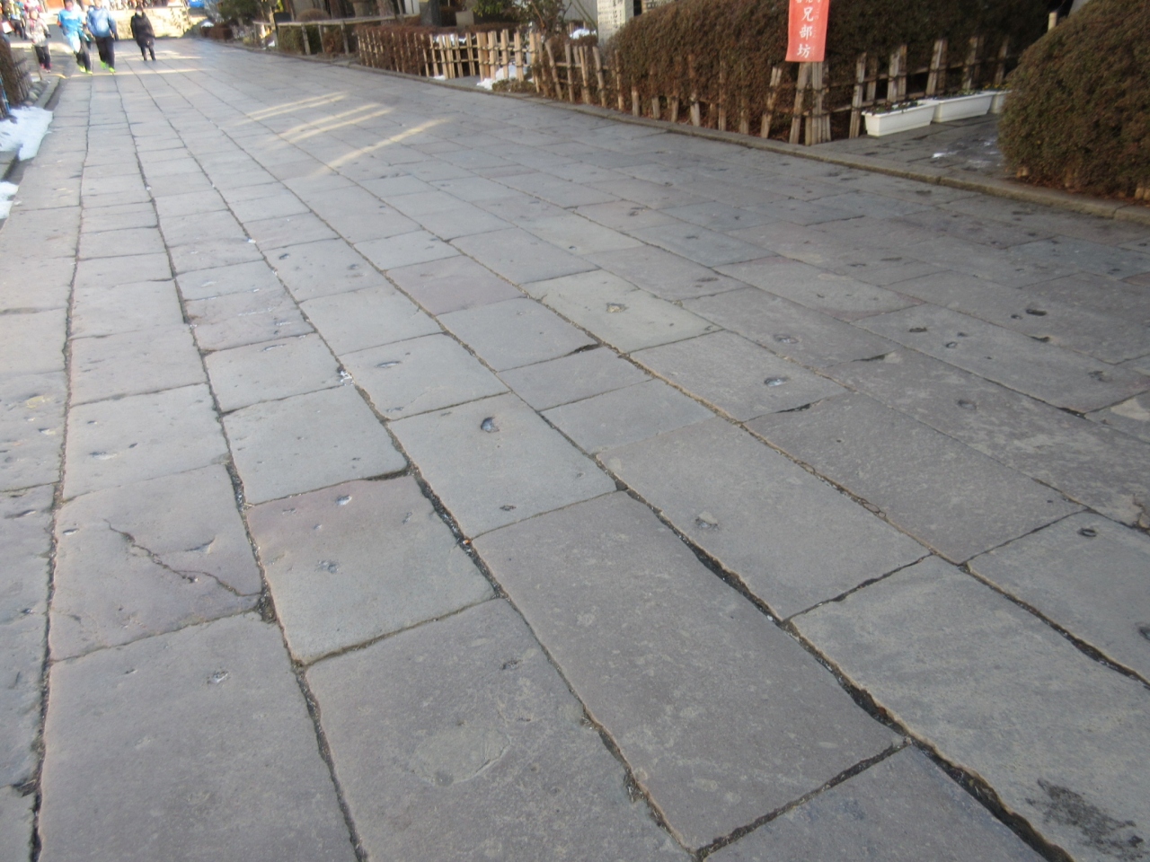 善光寺境内地入り口から三門下までの400mほどの距離に敷き詰められている石畳。7777枚だといわれている。