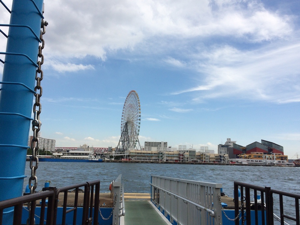 USJから近いせいか、スタッフと思しき外国人のお客さんも多くいました。大阪湾を渡る天保山渡船場から乗る船は開放感満点。大阪市が運営する地元の方のための交通機関ですが、コレは観光の価値があります。実にいい乗り物でした。