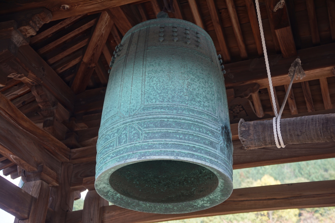 金蔵寺は、生野市街の山すそに並ぶ寺群の一つで、真宗本願寺派の寺。創建は平安時代後期。鎌倉時代に鋳造されたという釣鐘が重要文化財で、第二次世界大戦の拠出も逃れたのだとか。青々とした青銅の釣鐘が境内の鐘楼に吊られていました。