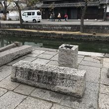 倉敷川は、かつて重要な水路としての役割を果たしていたそうで、倉紡製品原綿積み降ろし場跡がありました。