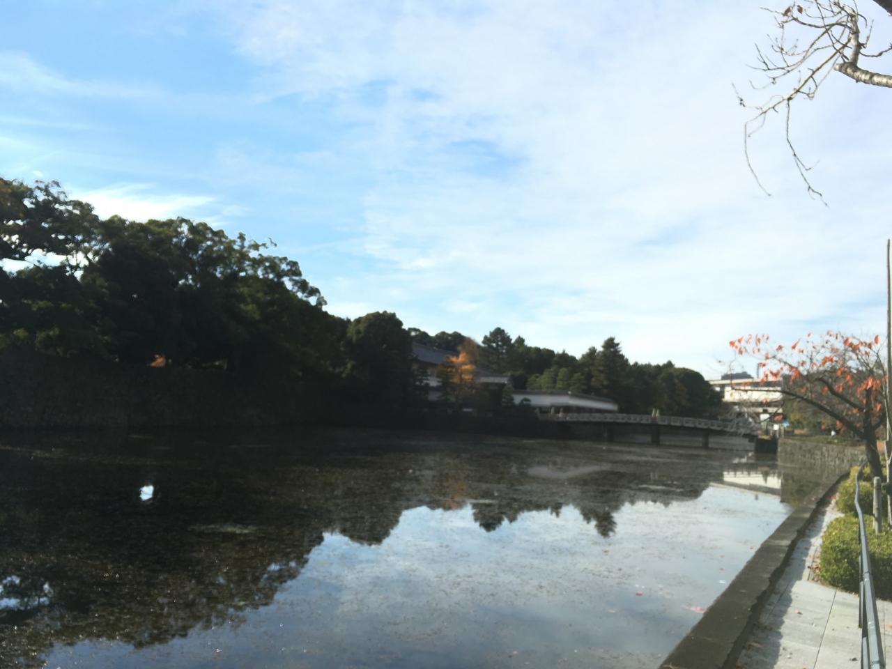 三日月濠とも呼ばれる乾濠。このあたりを散歩していると皇居付きの警察官が防犯無線で司令とやりとりしているのはよくあること、普段は完全な形では公開していない乾濠も含めて一般公開の時期は入れます。普段は北詰橋からはなんとか写真を撮影出来る感じです。