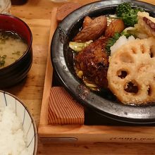 気取った感じでなく、ハンバーグに味噌汁、ごはんを箸でいただくスタイルでした。