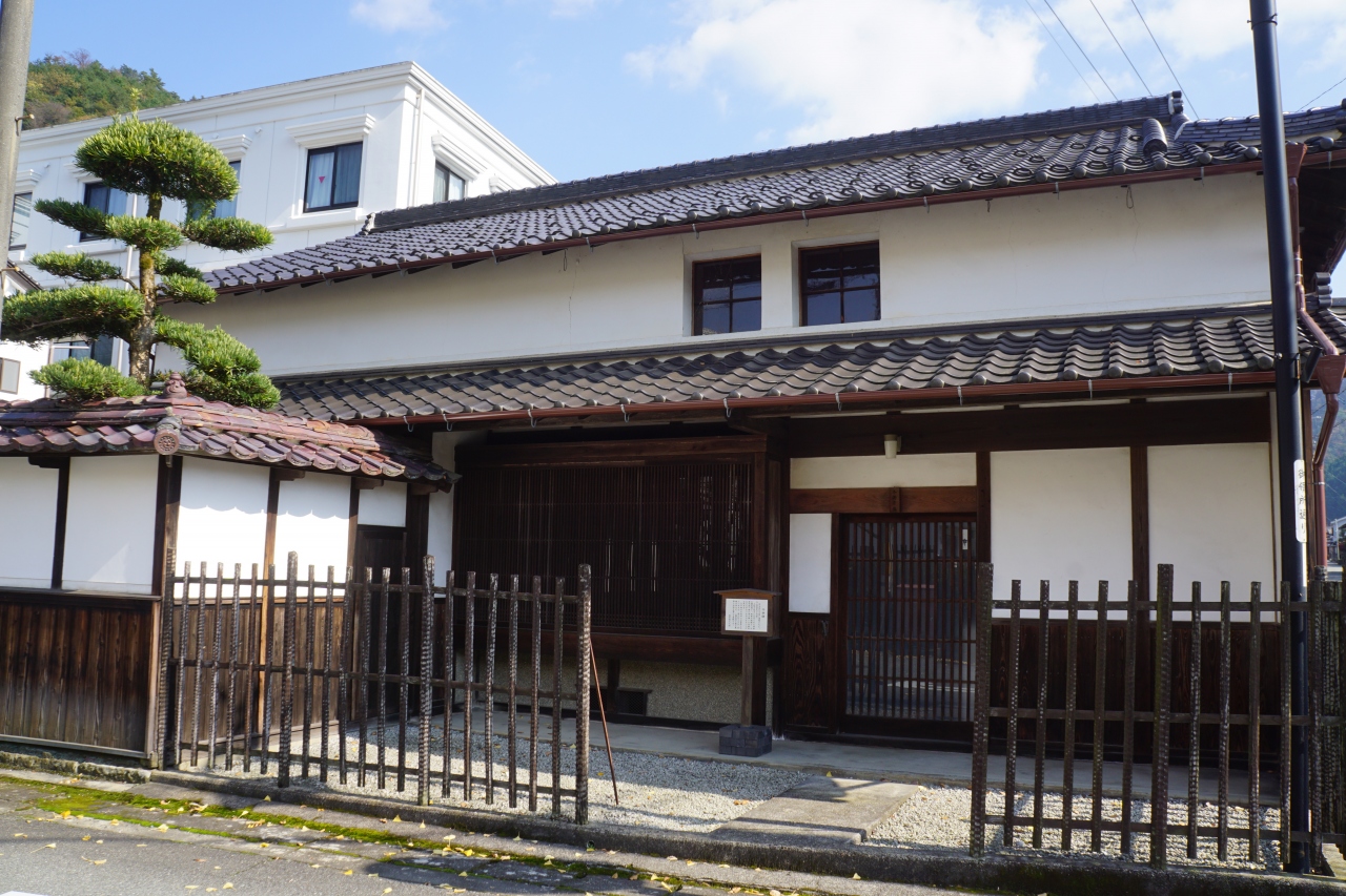 今井邸は、生野の市街中心部。明治時代中期に建築された大山師邸宅の別邸。大阪出格子に区切られた西麺の腰板張り、南面の板張り、白漆喰塗壁等が特徴。外観を確認することしかできませんが、風雅な佇まいの雰囲気は感じることが出来ると思います。