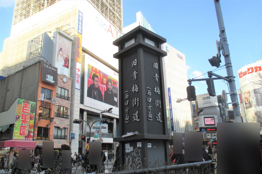 一昔前の「角筈ガード」は、通り抜けるには慣れている人でないとちょっと勇気のいる地下道でしたが、近年きれいに整備されました。出来上がったら行燈型の「旧青梅街道」の標識が立ちました。東口側には(西口方面)、ユニクロの横には(東口方面)と書かれています。今の青梅街道の起点は大ガードですが、昔の青梅街道はもう少し南の角筈ガード辺りだったということです。