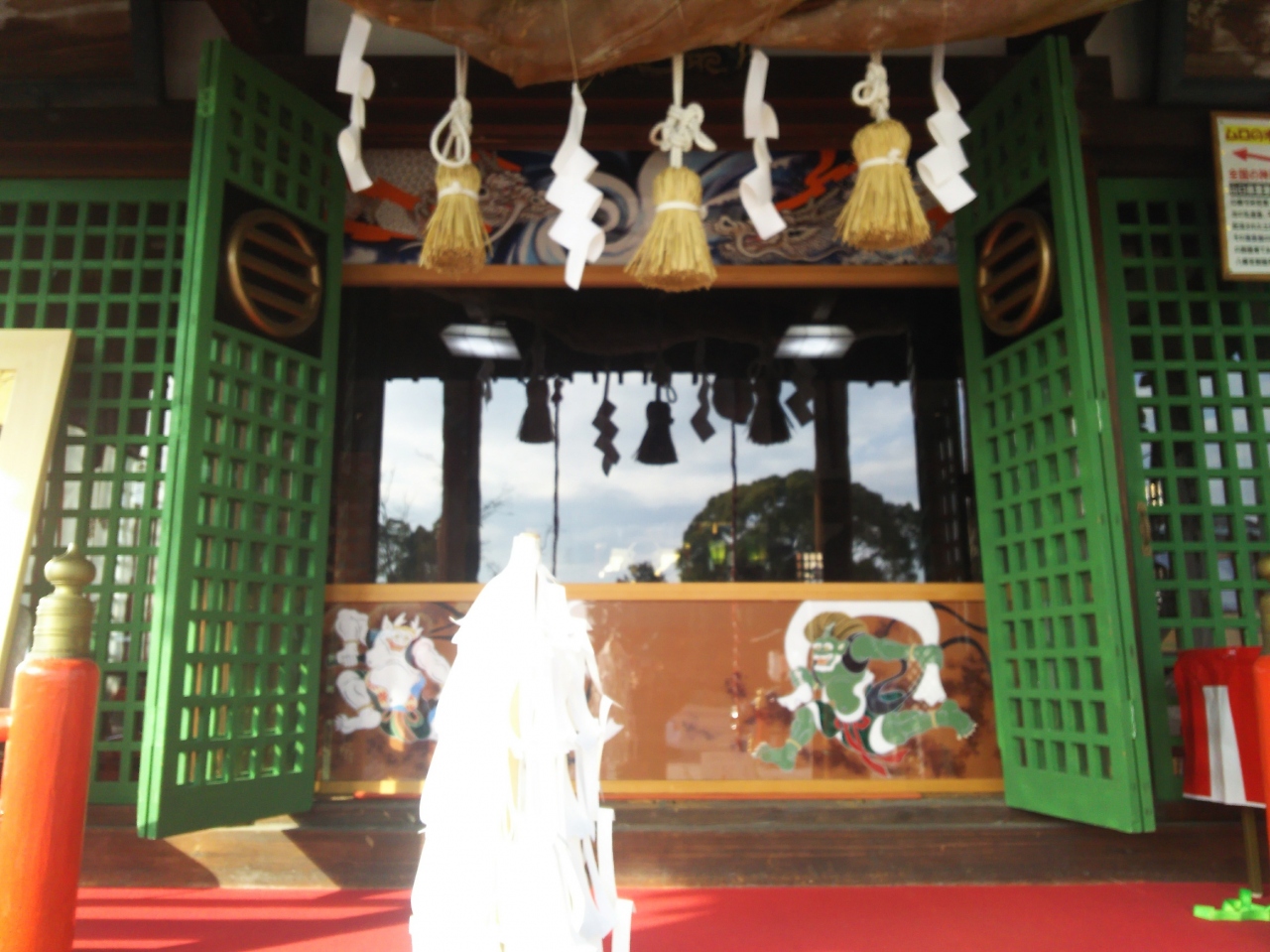 正面の拝むところに行き拝んでいて天井を見上げると12干支の絵が飾られていた。