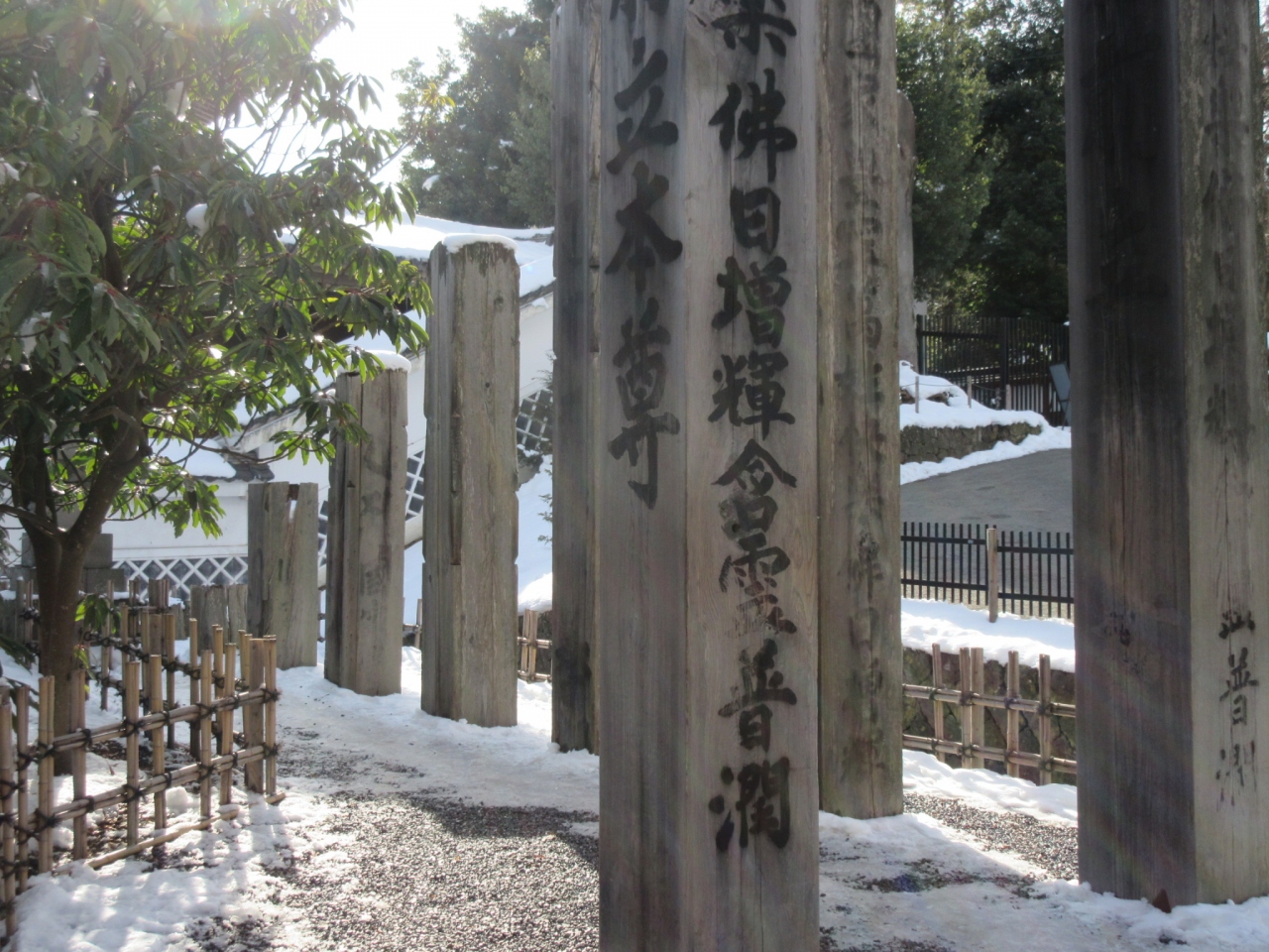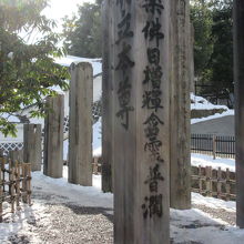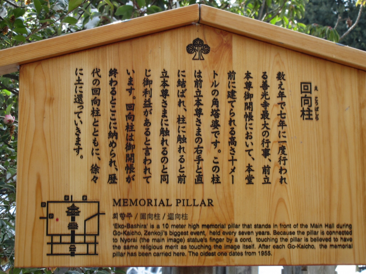 7年に一度開かれる御開帳のシンボルである回向柱。御開帳期間が過ぎた後の回向柱が、この一角に眠ることになり時と共に土に還っていくという。昭和30年のものから現在は10本。歴史を感じ意外と見応えある。それ以前のものは既に土に還ったたのだろうか。